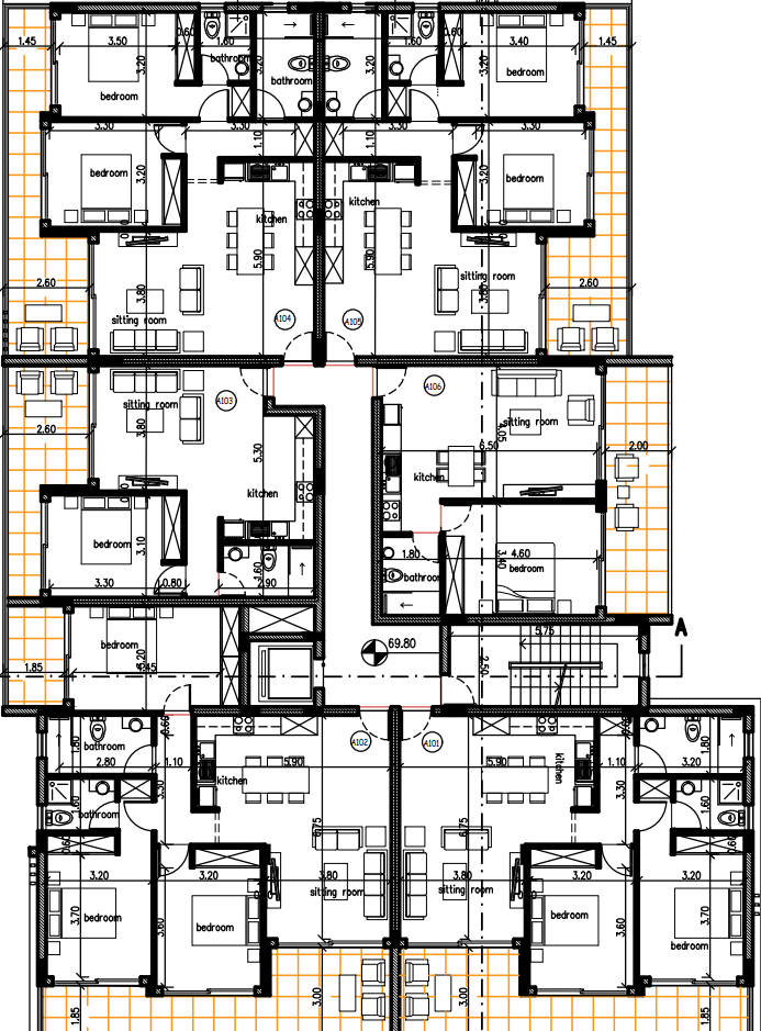 1-сп апарт. 69.0м² A106